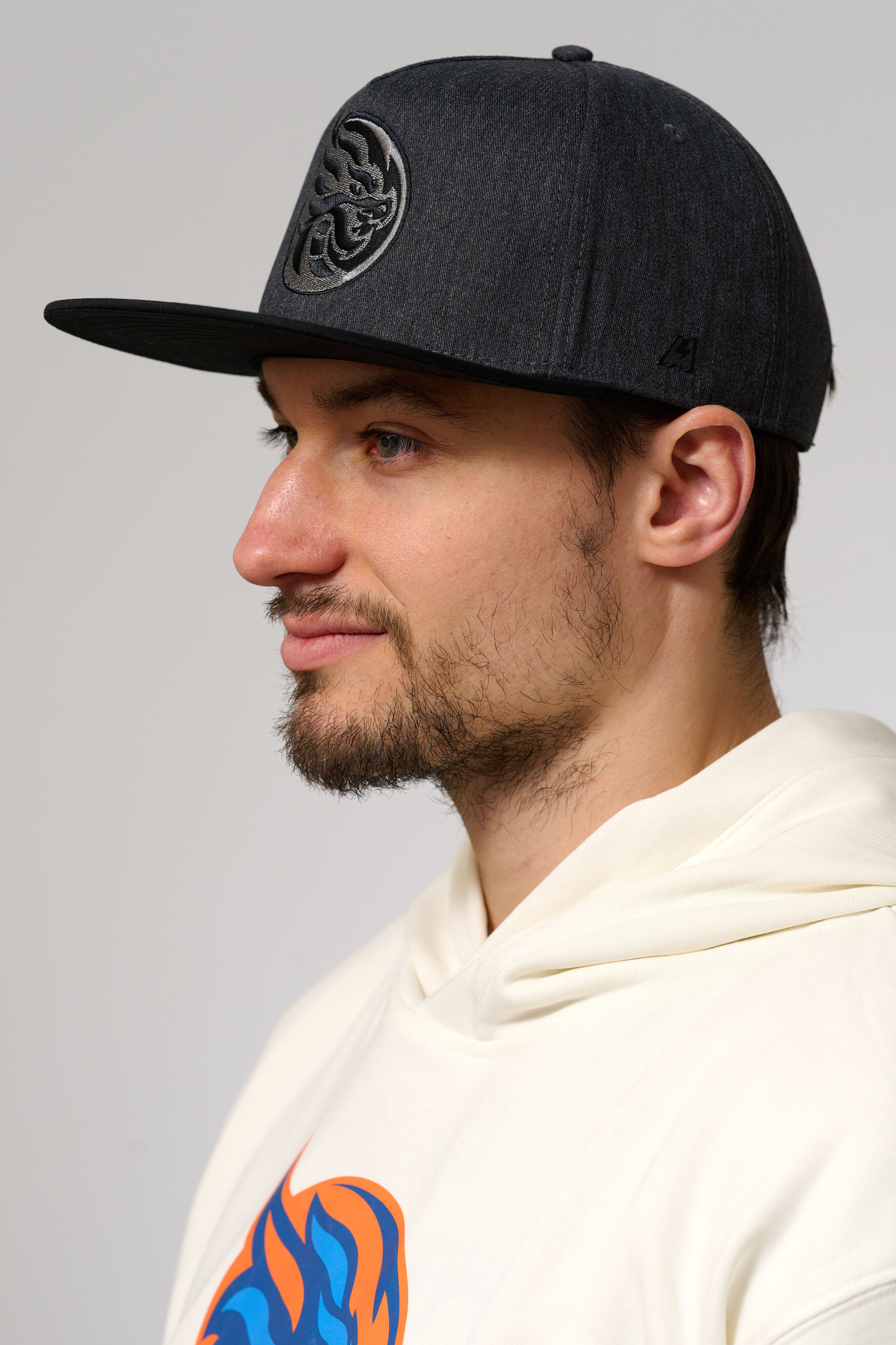 Логотип хоккейного клуба «Шанхай Дрэгонс» вышит монохромной полиэстеровой нитью по центру фронтальной панели.