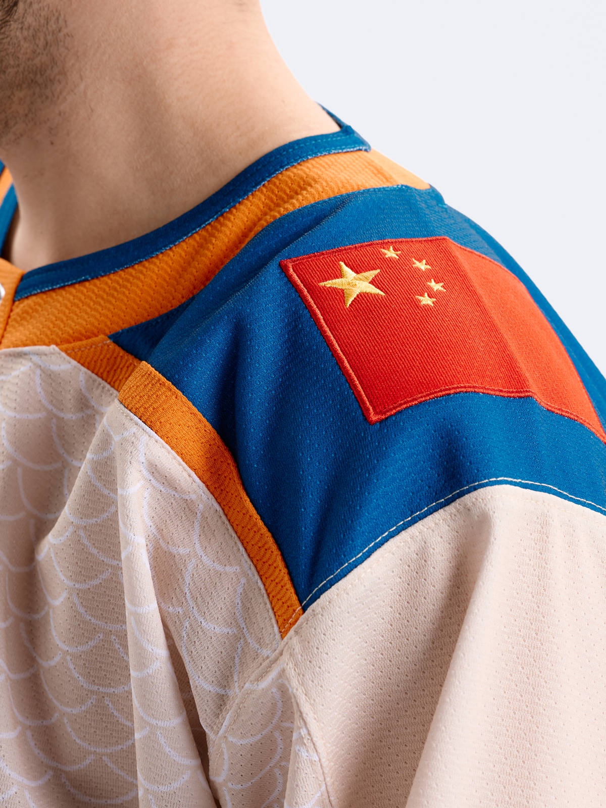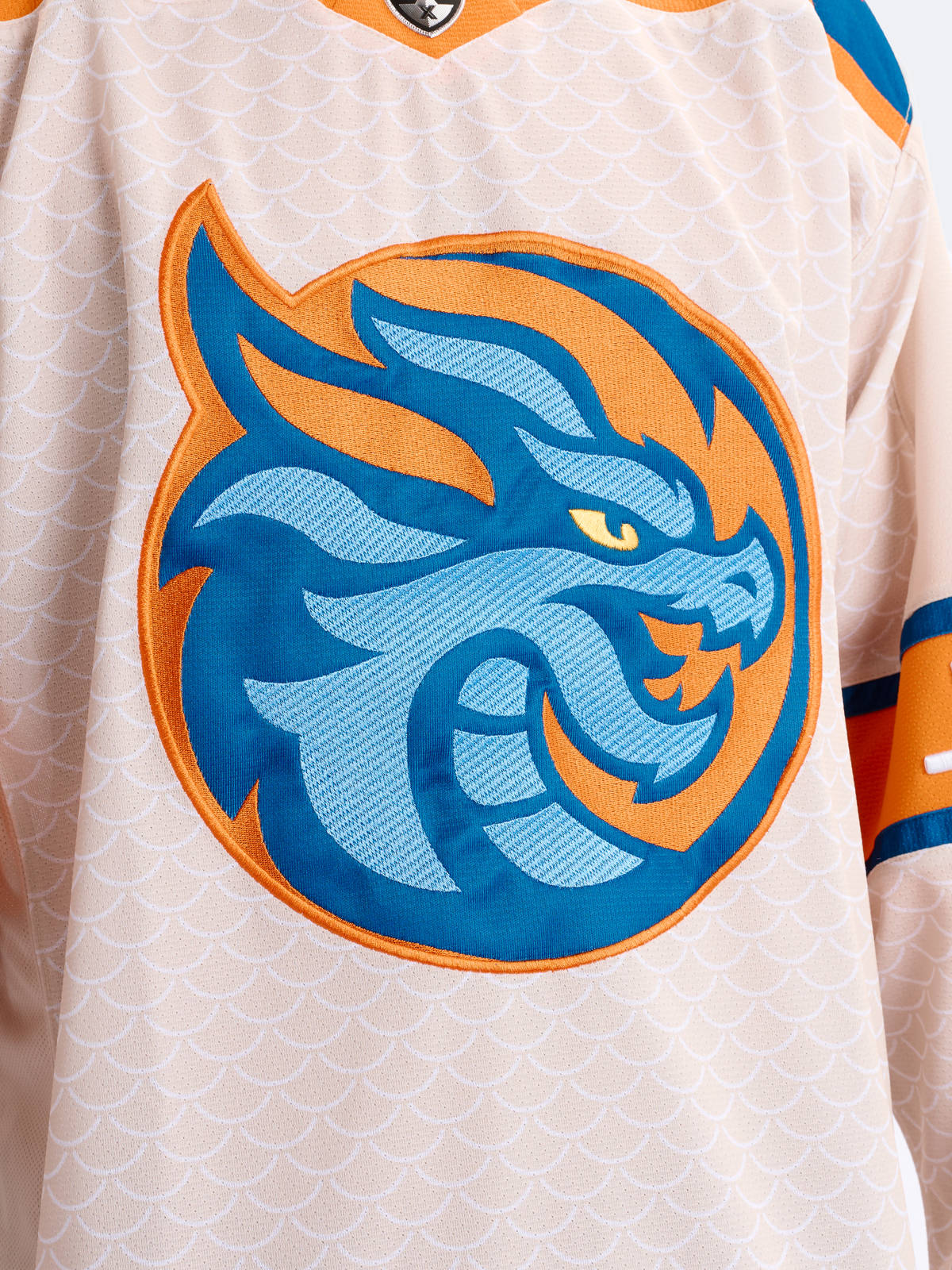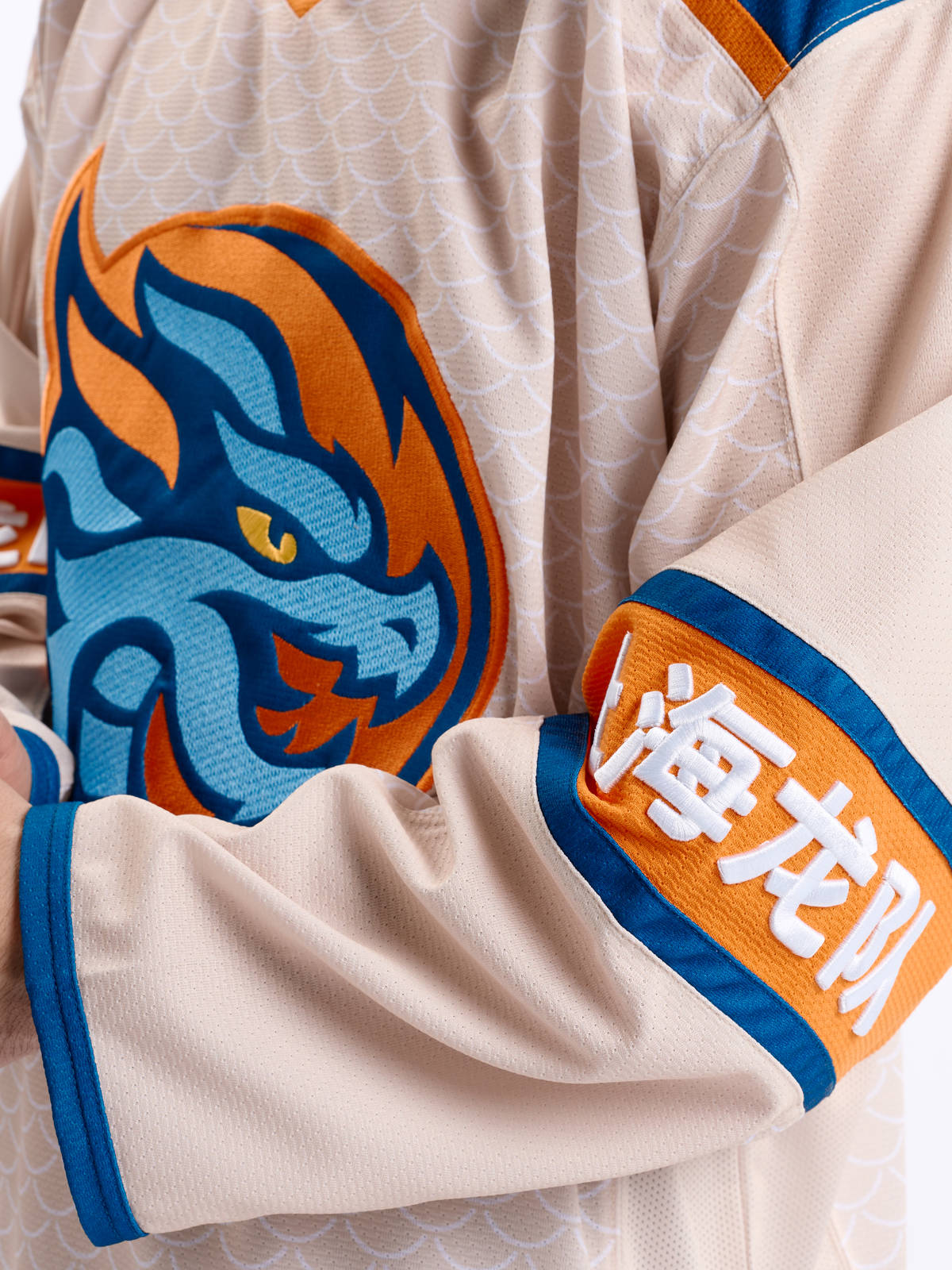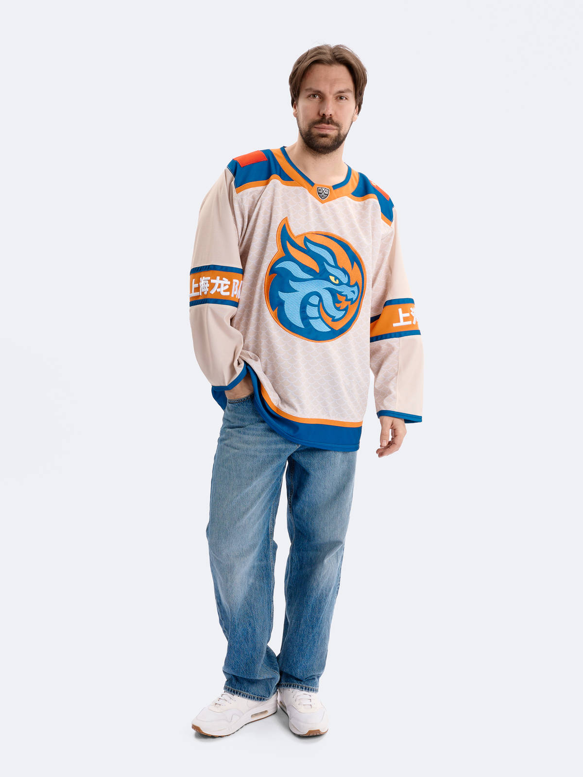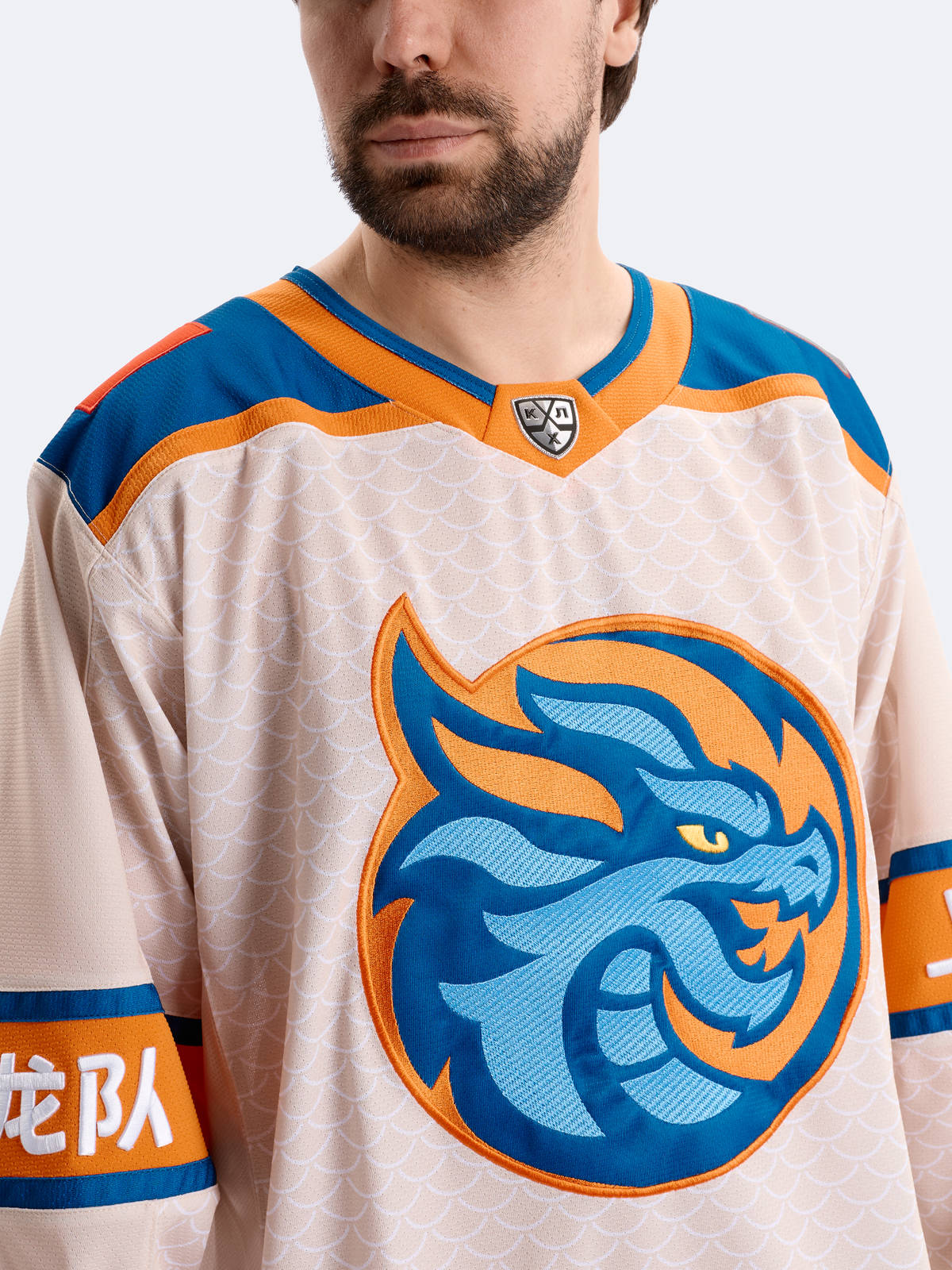Джерси хоккейное бежевое ХК "Шанхайские Драконы", реплика с вышивками (ТМ ATRIBUTIKA&CLUB)
