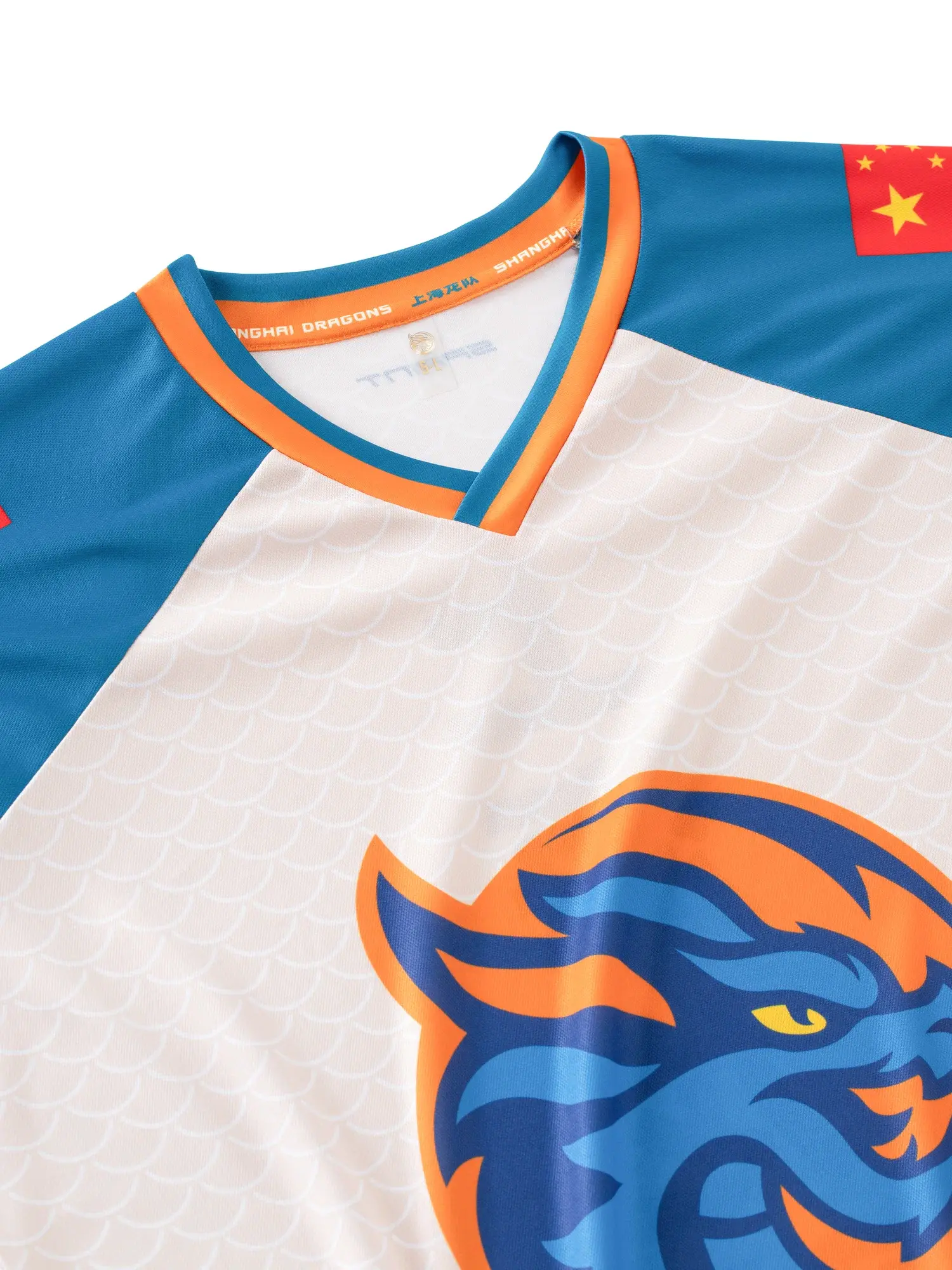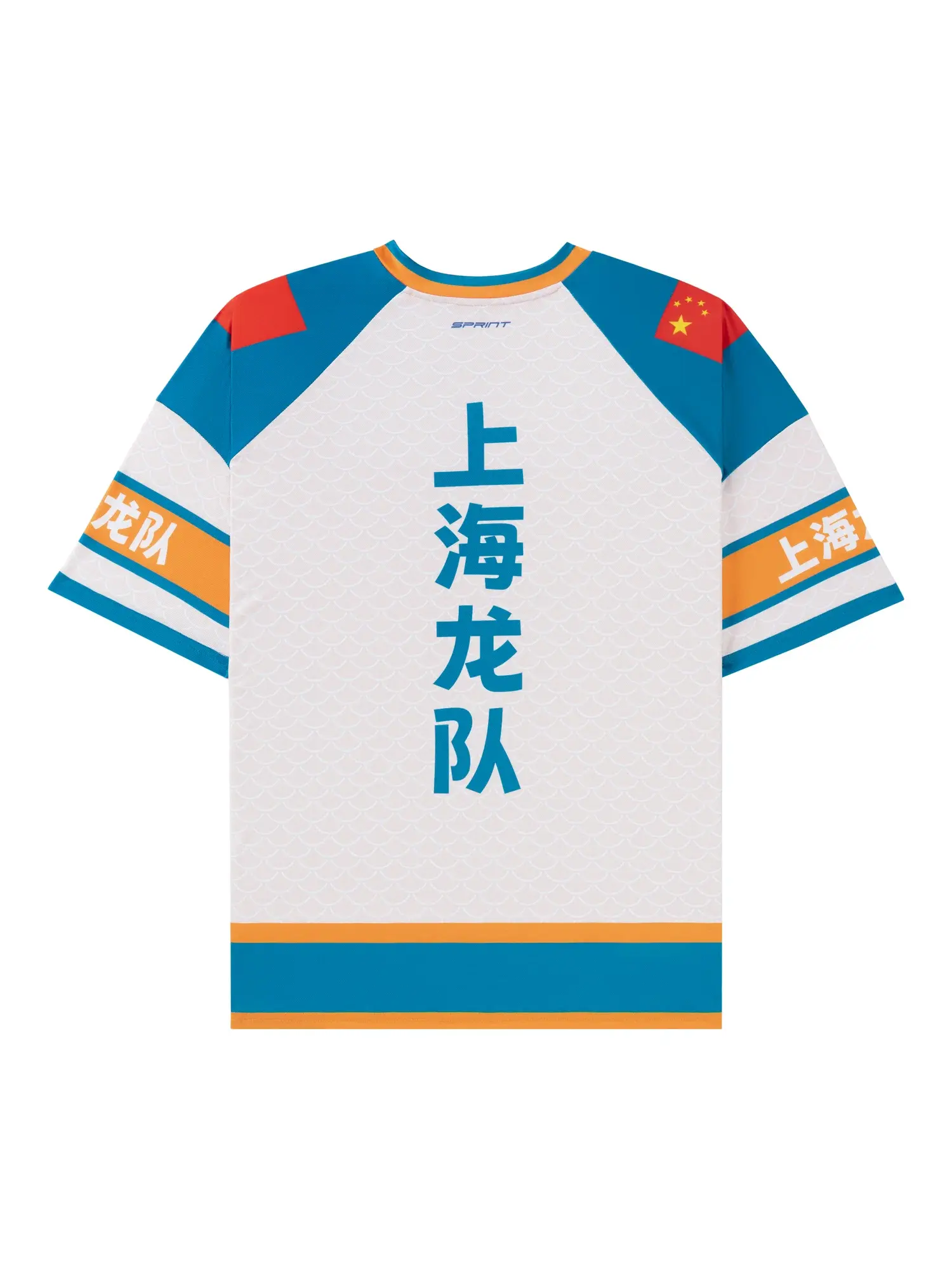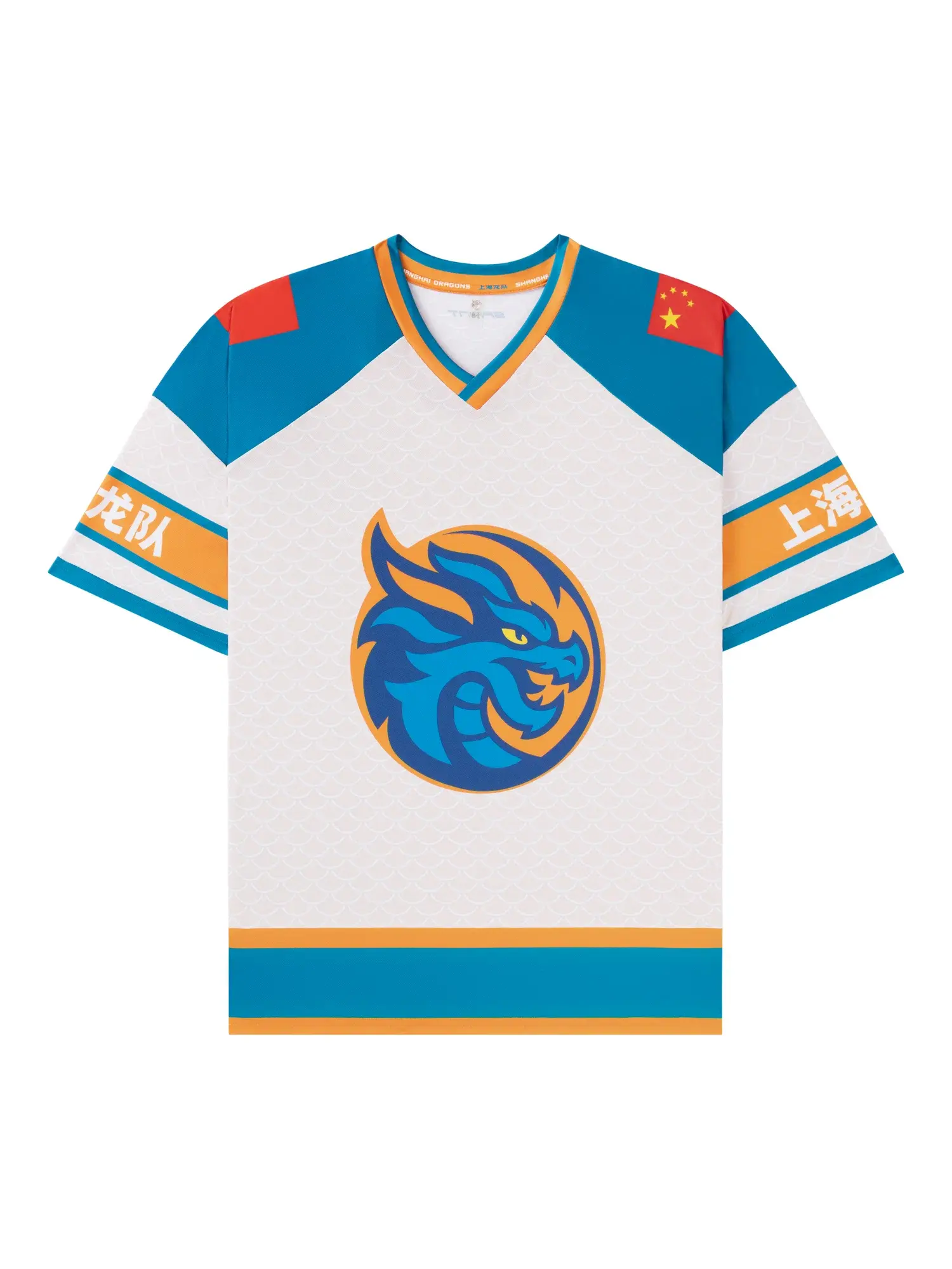 Футболка-джерси сублимационная бежевая ХК "Шанхайские Драконы" - стильный и функциональный выбор для любителей спорта и активного образа жизни.