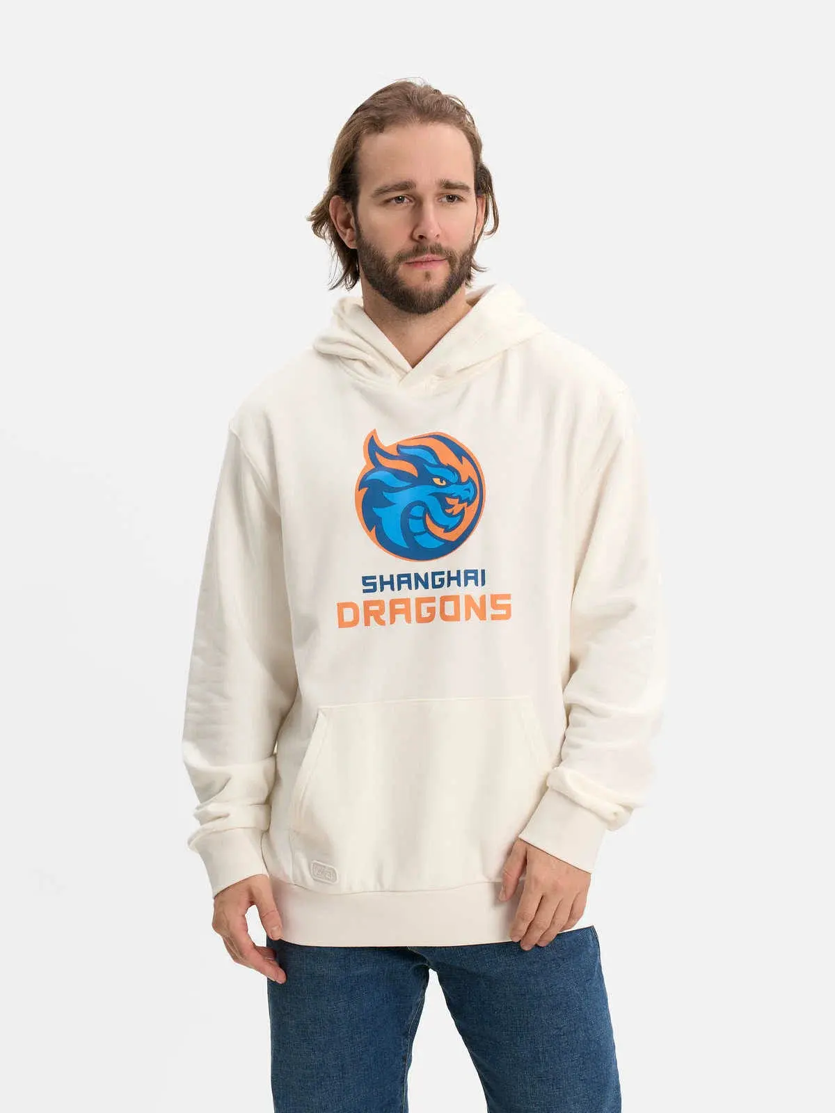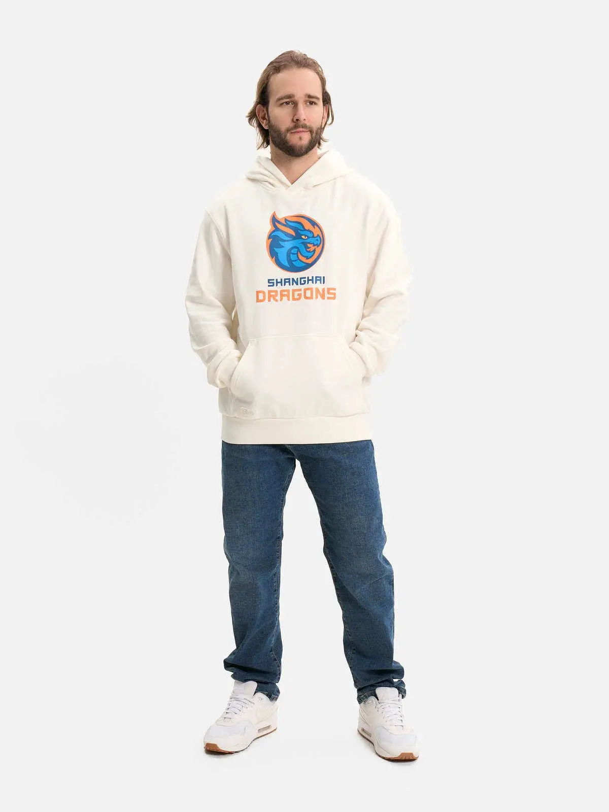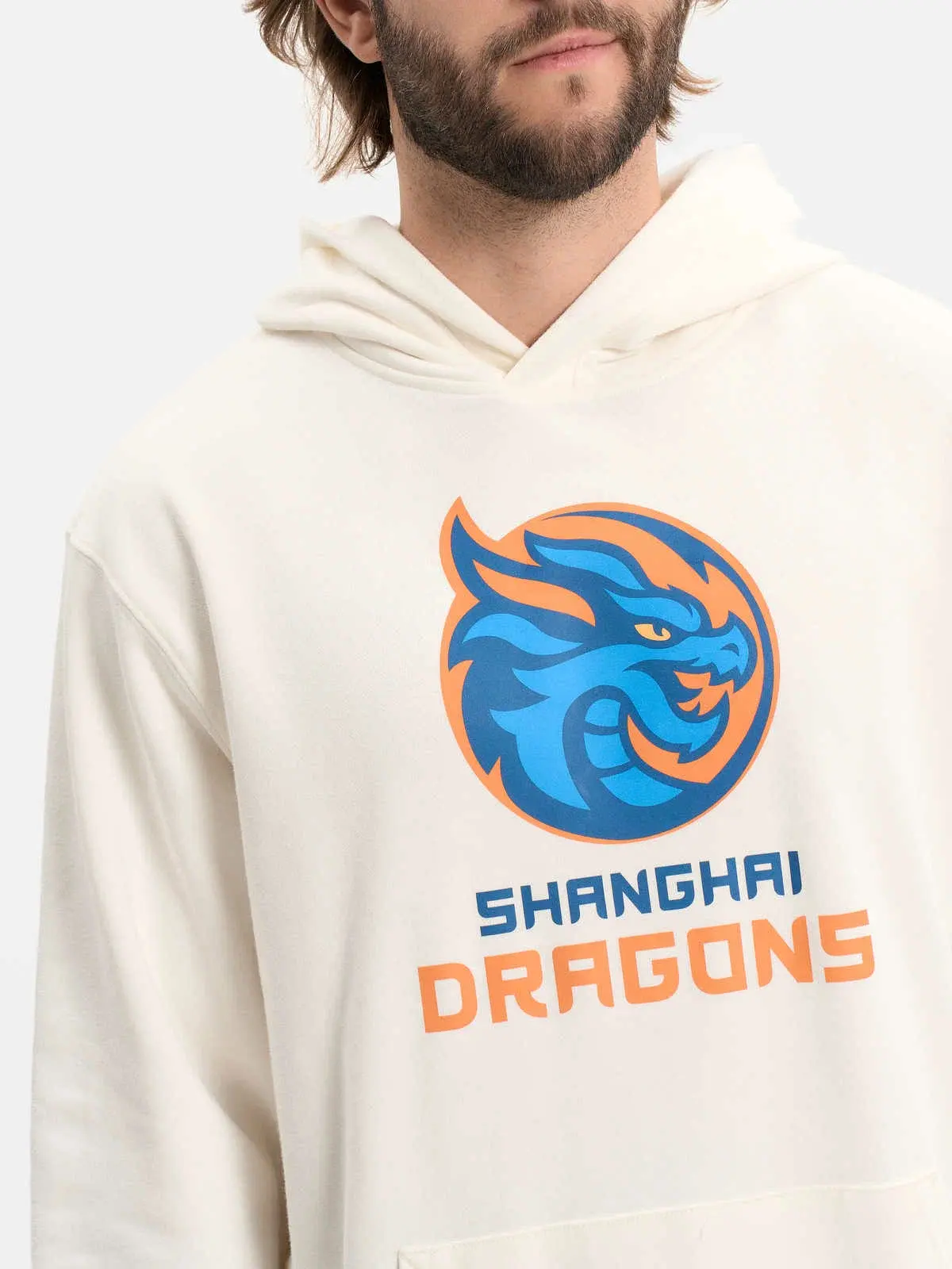 Толстовка с капюшоном молочная с лого ХК "Шанхайские Драконы" от ТМ Atributika&Club – стильный и комфортный выбор для любителей хоккея.