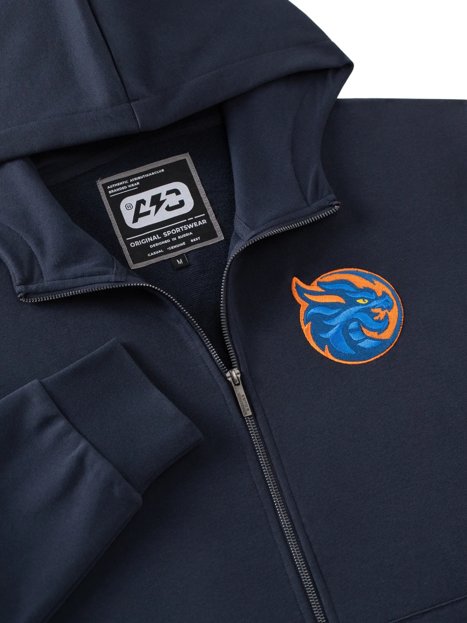 Толстовка на замке синяя с вышивкой ХК "Шанайские Драконы" от ТМ Atributika&Club – стильный и комфортный выбор для любителей хоккея.