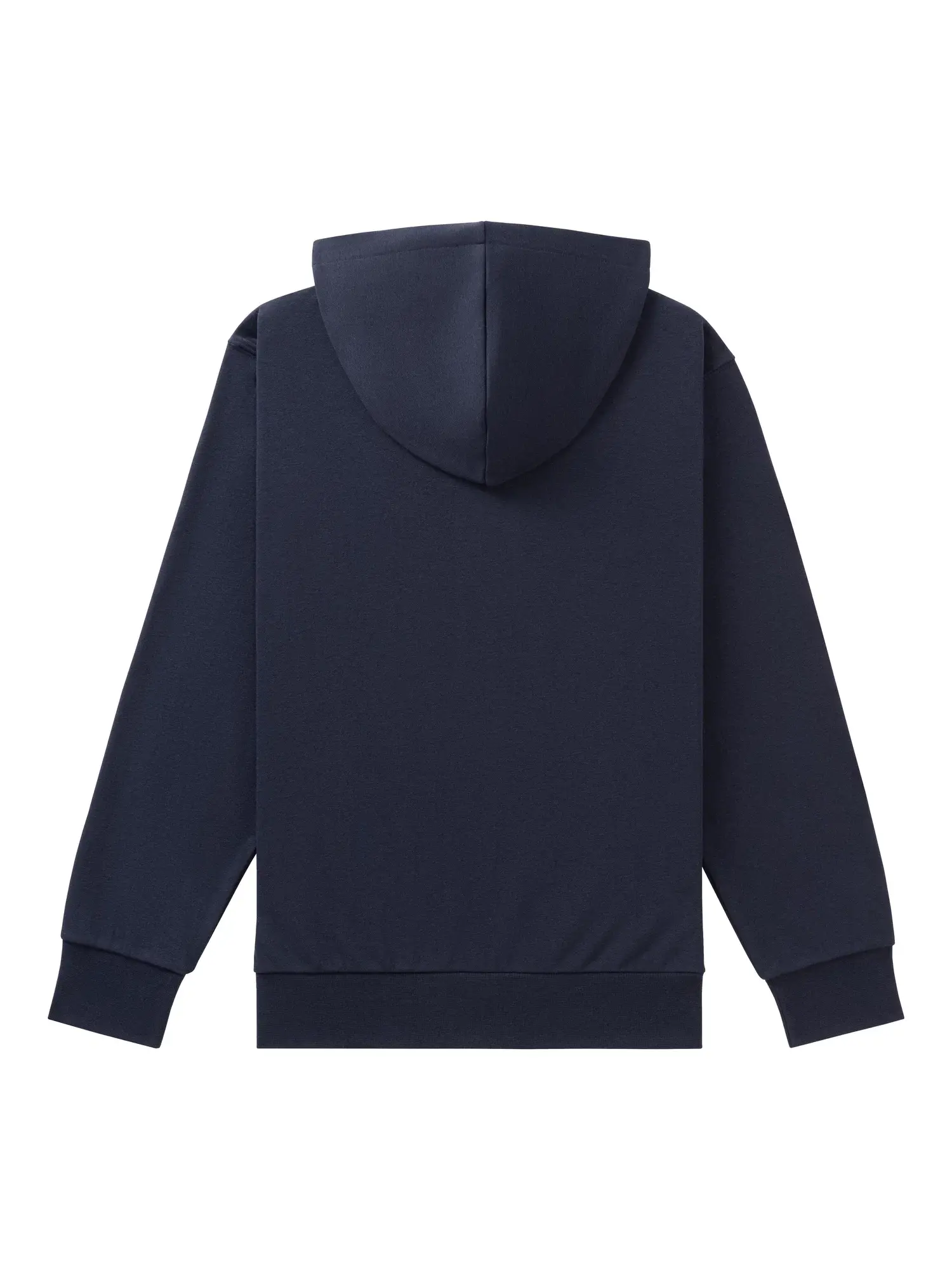 Толстовка выполнена в классическом синем цвете, который всегда актуален и подойдет к любому гардеробу. Вышивка на груди добавляет оригинальности и подчеркивает индивидуальность владельца.